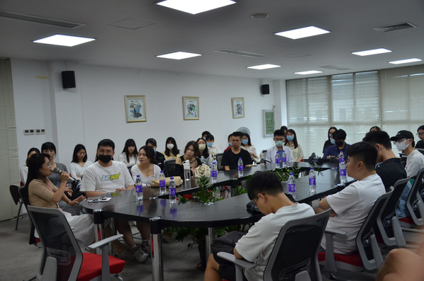 参观结束后,老师、同学们参加了公司召开的交流学习座谈会。会上,刘雨珊总经理和肖旭经理以幻灯片的形式向同学们展示了企业的规模、文化和发展方向,介绍了公司在疫情期间遇到的种种困难以及化危为安的精彩故事。刘雨珊总经理提到,疫情期间,公司业务停滞不前,公司领导积极响应国家号召,成功转型到卫生安全领域,打造无菌车间、引进全新技术、培养专业人才,最后把生产线从基本的劳保服装生产转变为防护服、医用口罩等防疫产品的生产,在向国家乃至全世界提供防护器具的同时,也成功化解了经营危机。在交流环节中,两位经理勉励同学们要戒骄戒躁、沉淀自我,学会吃苦耐劳、埋头苦干,不断积累经验,实现个人价值的绽放。同学们也积极提问,现场气氛热烈。