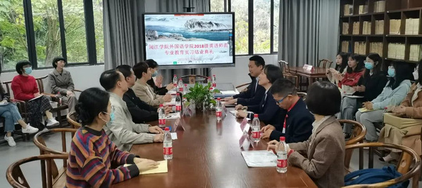 2022年5月16日下午, 吃瓜网站 2018级英语师范专业福州第四中学桔园洲中学教育实习队教育实习结业典礼在福州第四中学桔园洲中学图书馆二楼会议室隆重举行。
