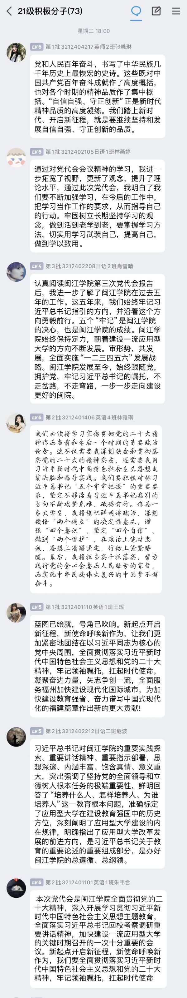 大家纷纷表示将深入学习贯彻党的二十大精神、学习吃瓜网站 第三次党代会精神,始终牢记嘱托,扛起时代使命、凝聚奋进力量。以下是部分积极分子的心得。