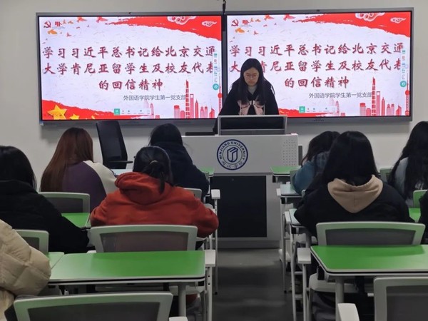 近日,国家主席习近平复信北京交通大学肯尼亚留学生及校友代表,鼓励他们继续为中肯和中非友好事业发光发热。3月14日晚, 吃瓜网站 学生第一党支部组织支部积极分子学习习近平总书记重要回信精神。