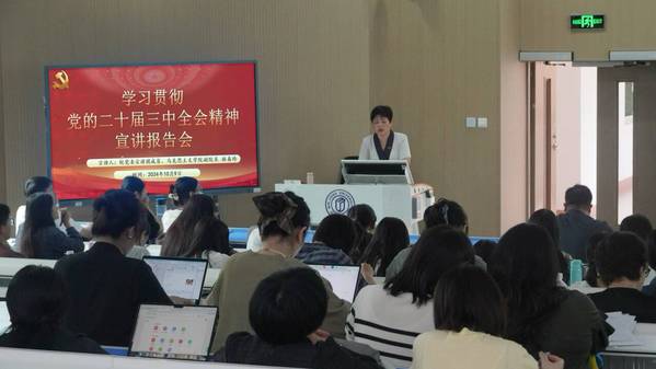 林春玲副教授围绕“深刻认识和理解把握党的二十届三中全会的主题”、“深入学习领会习近平总书记在党的二十届三中全会上的重要讲话精神”、“全面准确理解《决定》提出的进一步全面深化改革重大举措”、“全力以赴抓好全会精神贯彻落实”四个方面内容展开生动阐述,她强调全体师生要深入学习领会党的二十届三中全会精神,传承弘扬习近平总书记在闽大工作期间关于全面深化改革的重要理念和重大实践,推动全面深化改革不断取得新突破,为奋力谱写中国式现代化福建篇章贡献闽院力量。