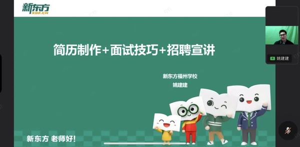 2月12日下午, 吃瓜网站 邀请福州新东方培训学校开展线上就业招聘会暨就业技能指导会。本次会议由新东方培训学校讲师姚建建主讲, 吃瓜网站 、人文学院、法学院毕业班学生参加。