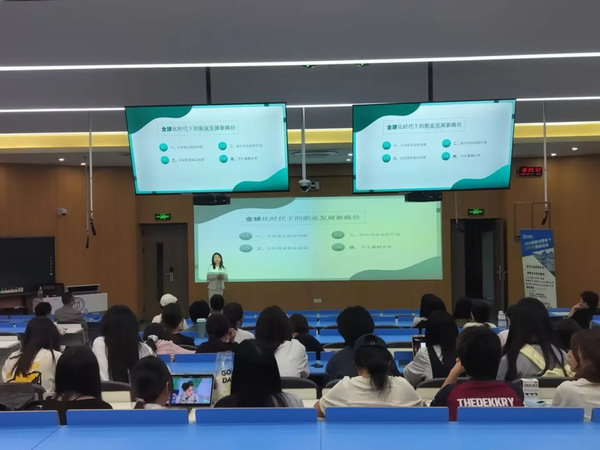 会上,老师们就近年国内人才竞争激烈、国际市场经济不景气、新兴国际市场人才需求量大等情况,通过国内外就业市场对照,在提高个人竞争力方面提出专业建议,并强调了综合素质的重要性和作为英专生学科结合的巨大优势,为同学们补足了信心,帮助同学们明确了未来的留学方向。