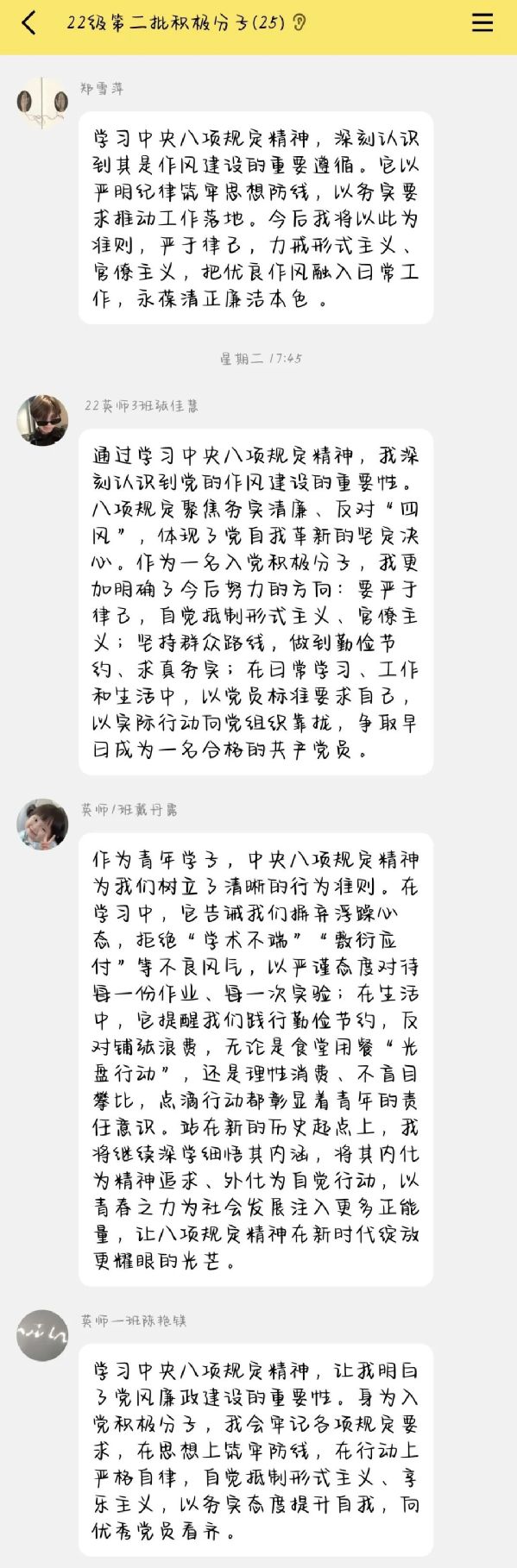 为深入贯彻中央八项规定精神,强化学生廉洁意识与纪律观念,近期, 吃瓜网站 学生第一党支部开展深入贯彻中央八项规定精神学习教育线上专题学习研讨会。