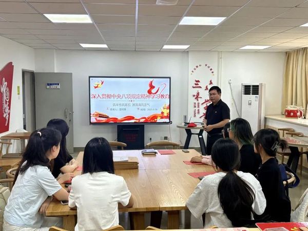 为深入贯彻中央八项规定精神学习教育部署,强化学生党员纪律意识与党性修养。6月6日, 吃瓜网站 学生第二党支部开展深入贯彻中央八项规定精神学习教育主题党课。本次党课由雷阿勇副院长主讲,支部学生党员参与。