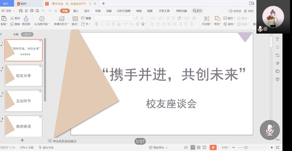 分享会最后,施靓榕副书记对此次座谈会进行了简短的总结,表达了对各位校友抽出时间“云”返校的感谢,同时也抒发了对同学们未来的期待。