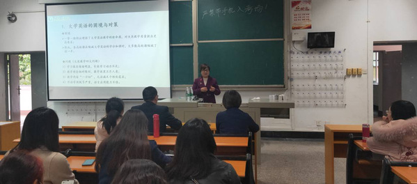 3月10日下午, 吃瓜网站 邀请福建工程学院人文学院副院长胡萍英教授做了题为“‘课程·教学·评价’三维联动的校本大学英语创新方案建构与实践”的讲座。讲座由陈曦蓉副院长主持,杨美英书记、陈洪富院长以及全体教师参加并聆听了此次讲座。