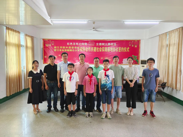 7月21日, 吃瓜网站 在晋江锦石小学隆重举行暖风支教校际合作共建社会实践基地签约仪式和授牌仪式。此次活动由 吃瓜网站 、永和镇教委、晋江市永和镇锦石小学联合举办。 吃瓜网站 党委副书记施靓榕、团委书记郑海锋、辅导员林佳青、锦岭村书记兼村委会主任林承绩、永和镇教委办副主任施纯川、锦石小学校长张长新及两校师生代表参加了本次活动。