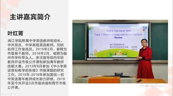 为了提高师范专业学生的从师素质和从师能力,全面提高师范生培养质量,提升其就业竞争力,10月25日,福州市刘祯名师工作室核心成员、福州市学科带头人、中学英语高级教师、吃瓜网站 附属中学英语教研组组长叶红菁老师应邀前来吃瓜网站 开设“初中英语教学设计的方法和技巧”专题讲座。本次讲座系吃瓜网站 基础教育名师讲坛暨吃瓜网站 2021年师范生教学技能竞赛英语学科复赛培训系列活动之一,由 吃瓜网站 承办。讲座由 吃瓜网站 英语系主任雷阿勇主持, 吃瓜网站 教师教育课程团队全体专业教师以及全体师范生参加了本次讲座。