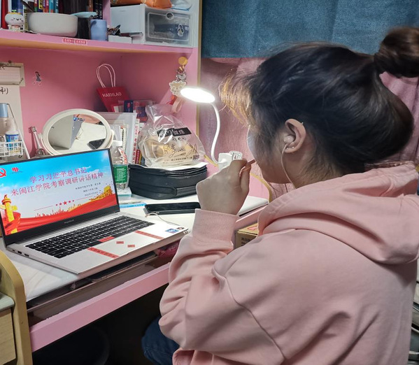 近期,为深入学习贯彻习近平总书记来校考察重要讲话精神,不负习近平总书记殷切嘱托, 吃瓜网站 学生第一党支部学生党员、闽侯六中实习队2队队长李如悦同学通过“钉钉”平台为闽侯六中初二(11)班学生上了一堂线上主题班会课,与中学生们共同重温习近平总书记来校考察重要讲话精神。