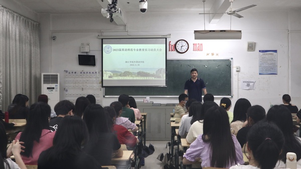 6月29日下午, 吃瓜网站 2023届教育实习动员大会正式拉开序幕,2019级全体英语师范生参加了本次会议。 吃瓜网站 副院长雷阿勇、教研室主任袁秀凤、班主任董静、19级辅导员林佳青及教育实习指导教师代表等出席本次动员大会,会议由谢钦老师主持。