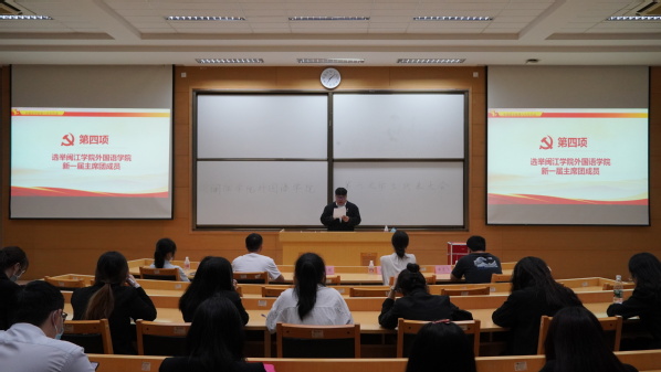 会议第一项议程,上一届学生会主席刘梓萱展示了学生会过去一年所倾力举办的各项活动、卓有成效的工作成果以及取得的傲人成绩。学生会在工作中围绕德智体美劳全面发展的育人目标,以服务同学、促进学生全面发展为宗旨,引导外院学子争做品德高尚志趣高雅的大学生。