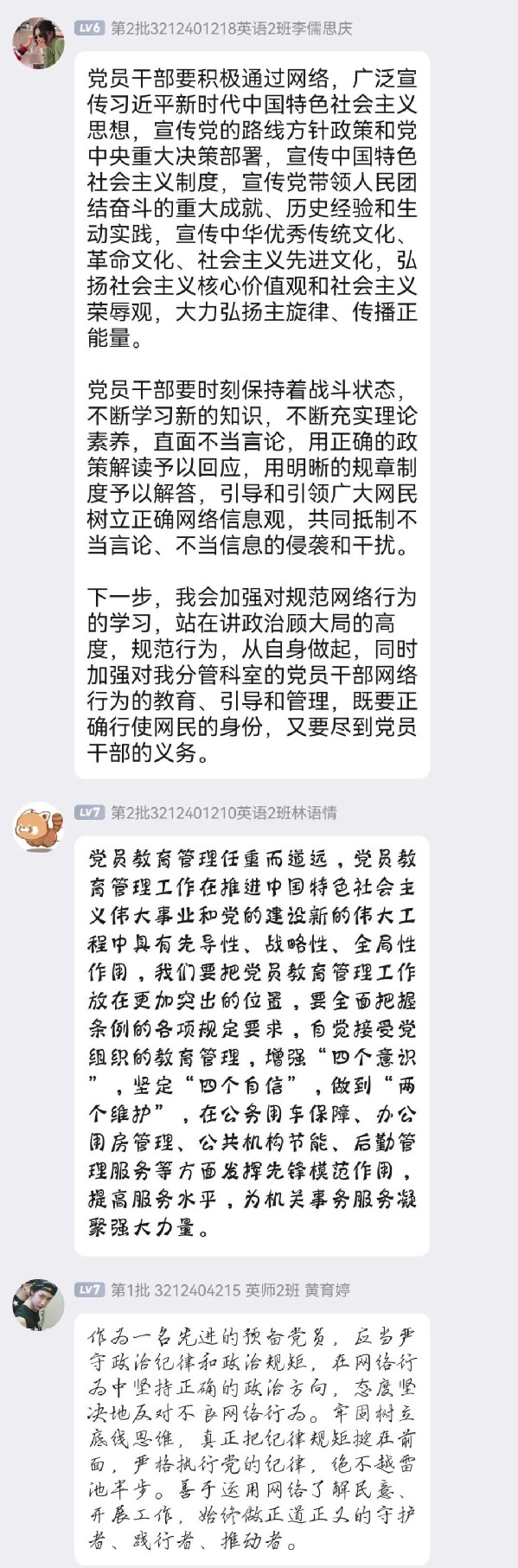 作为预备党员,我们必须严守政治纪律,在网络行为中坚持正确的政治方向,态度坚决地反对不良网络行为。牢固树立底线思维,真正把纪律规矩挺在前面,严格执行党的纪律,绝不越雷池半步。善于运用网络了解民意、开展工作,始终做正道正义的守护者、践行者、推动者。