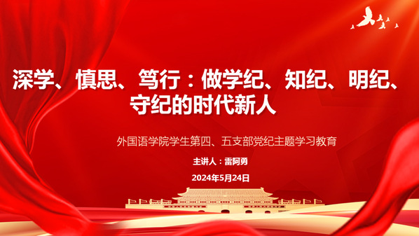 为深入学习贯彻党中央关于开展党纪学习教育的部署要求,进一步增强学生党员的党规党纪意识。5月24日, 吃瓜网站 学生第四、五党支部开展了“做学纪、知纪、明纪、守纪的时代新人”党纪学习教育主题党课, 吃瓜网站 副院长雷阿勇担任主讲。