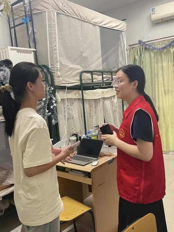 走访过程中,学生党员们了解了新生入学以来的学习、生活状况,倾听学生心声,就大家遇到的困难和疑惑给予了建议和指导,并建议新生提早做好个人规划,尽快融入校园生活,不断提升自己、学好本领。同时,学生党员们向新生详细介绍了党的基本知识、发展历程和入党程序,引导新生积极向党组织靠拢。最后,学生党员们提醒新生务必要提高人身安全意识和金融安全意识,并祝愿新生健康顺利地度过大学四年。