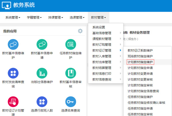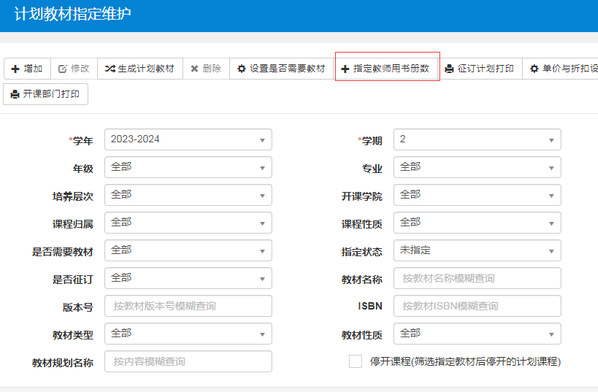 3.教材管理——教材征订管理——计划教材指定维护(推荐)