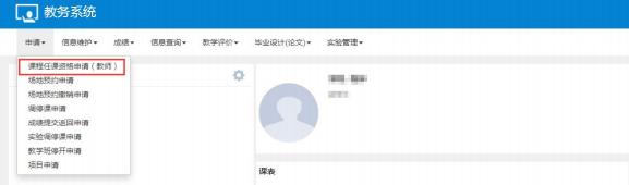 1.操作路径: 申请 →课程任课资格申请 (教师)