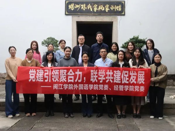 为进一步促进党建工作提质增效,提升党务干部能力,推动学院间的交流与合作,11月22日, 吃瓜网站 与经管学院一行前往福建省直机关廉政教育点螺洲陈氏家风家训馆开展党建联学共建活动,并就党建工作进行交流研讨。 吃瓜网站 党委书记郭崚、经管学院党委书记陈旭英、副书记许雪峰及双方党支部书记等十余人参加。