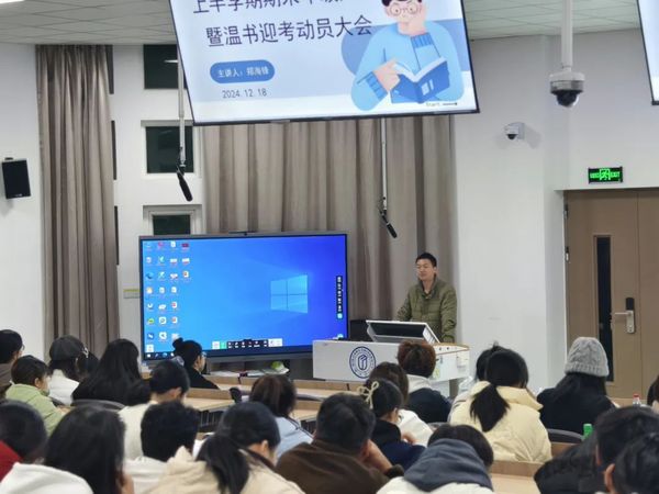 12月18日, 吃瓜网站 召开2024级2024-2025学年上半学年期末年级大会暨温书迎考动员大会。 吃瓜网站 辅导员郑海锋以“回顾与展望,温书迎考创佳绩”为主题,引导学生做好期末复习,关注校园生活的各个方面,为本学期画上圆满句号。
