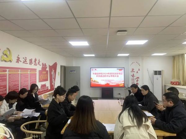 最后,郭崚进行总结发言。她首先对各支部2024年度的工作情况指出了三点不足:一是理论学习不够深入全面;二是党建工作的抓实力度有待加强;三是党建创新能力存在短板,并对新一年的党支部工作提出了四点希望:一是要在加强学习上下功夫,增强工作源动力。紧扣工作学,立足实际学,扎实做好支部标准化建设,增强基层党组织战斗堡垒作用;二是要在联系群众上下功夫,增强工作推动力。坚持群众路线,增强支部服务师生本领,建立健全党员激励帮扶机制,提升党支部的凝聚力和向心力;三是要在“一融双优”上下功夫,增强工作执行力。以学校“奋勇争先落实年”专项行动这一中心工作为抓手,教工党支部要服务好教学科研工作,学生党支部要结合学校“一二三四五六”立德树人新格局来发挥作用;四是要在支部品牌创建上下功夫,增强工作影响力。持续做好“萤火1399”党建品牌和“译福州”项目,发挥外语特色,做好地方服务。