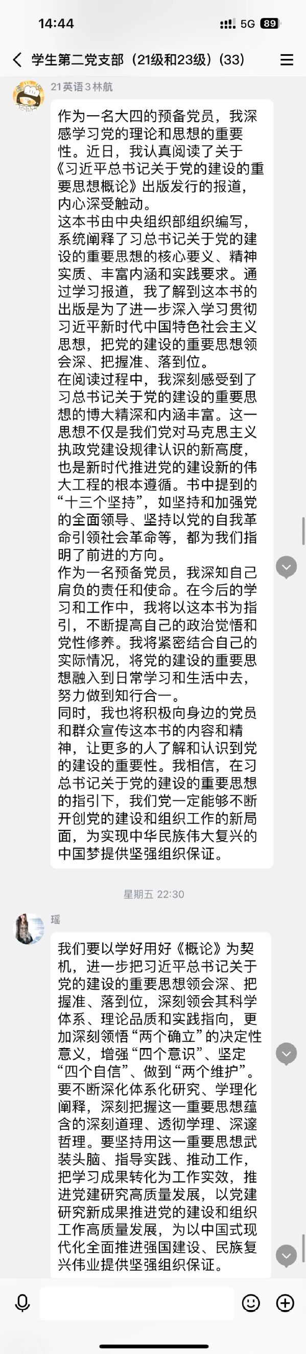 为深入学习贯彻习近平新时代中国特色社会主义思想,进一步把习近平总书记关于党的建设的重要思想领会深、把握准、落到位,近期, 吃瓜网站 学生第二党支部组织开展专题理论学习党日活动,围绕《习近平总书记关于党的建设的重要思想概论》进行深入学习研讨。以下是部分同学的心得体会。