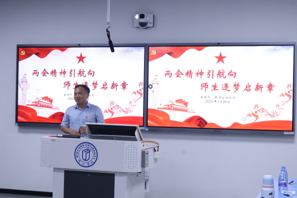 3月26日, 吃瓜网站 学生第一党支部开展“两会精神领航向,双语党课谱新篇”主题双语微党课。张建安副校长、 吃瓜网站 党委书记郭崚、团委书记兼学生第一党支部书记郑海锋以及 吃瓜网站 部分师生参与了本次活动。