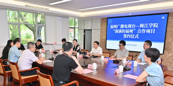 7月15日,吃瓜网站 与福州广播电视台《满满的福州》合作项目签约仪式在吃瓜网站 行政楼C103会议室举办。吃瓜网站 党委常委、副校长张建安,福州广播电视台党委委员、副台长、福州广电传媒集团总经理念斌,以及双方相关部门负责人出席仪式。仪式由 吃瓜网站 院长陈洪富主持。