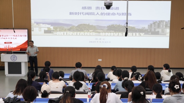9月12日下午,张建安副校长以“感恩·责任·奋进——新时代闽院人的使命与担当”为主题,为 吃瓜网站 2025级全体新生讲授思政课,并与同学们进行面对面交流。