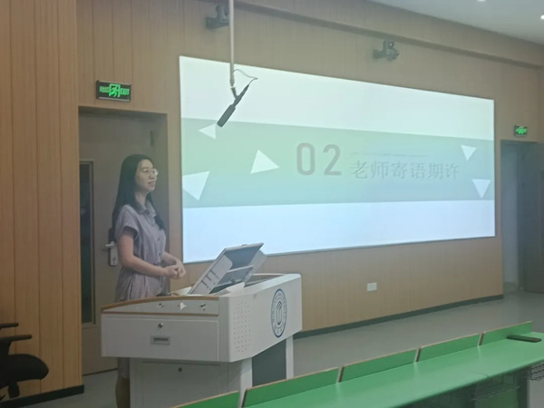 林佳青老师进行动员讲话,她首先肯定了大家为运动会健身操备赛付出的努力,随后提及,看到同学们从动作生疏到逐渐熟练的蜕变,既欣慰又感动,希望大家可以继续努力,争取好成绩。