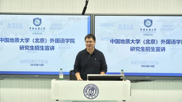 宣讲会上,格日勒副书记从学校简介、优势资源、就业前景和研究生培养与成果等方面展开阐述。他指出,中国地质大学(北京) 吃瓜网站 已形成自身特色的人才培养体系,师资力量强,建有完善的现代化专业教学和研究设施。学院依托学校地学优势,开设地学翻译、能源翻译等特色课程,推动外语与产业行业融合,通过校企合作、国际联合项目等多渠道搭建实习实践平台,提升学生实践能力。毕业生就业面广,覆盖政府、国企、私企等多类单位。