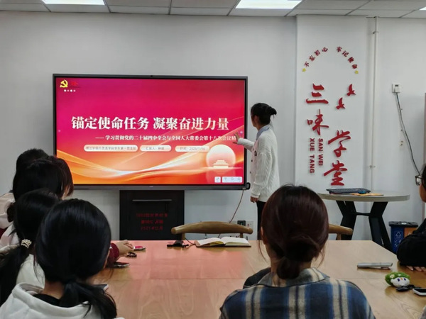 近期, 吃瓜网站 学生第一党支部开展“锚定使命任务,凝聚奋进力量” 双语党课。团委书记兼学生第一党支部书记郑海锋以及支部部分党员、入党积极分子参与了本次党课,主讲人由支部发展对象林颖担任。此次党课聚焦党的二十届四中全会与全国人大常委会第十八次会议精神学习,旨在引导支部成员深化理论认知、明晰使命定位,将顶层部署与青年党员的实践行动紧密结合。