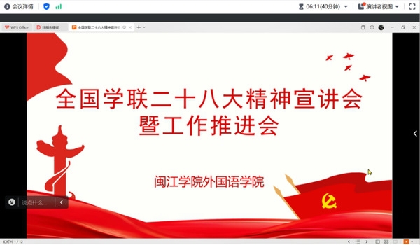 为深入学习贯彻全国学联第二十八次代表大会精神,进一步凝聚青年力量、明确工作方向,推动学院学生工作高质量发展, 吃瓜网站 于7月29日召开了学习全国学联二十八大精神宣讲会暨学生工作推进会的线上会议。学院团委书记兼学生会指导老师郑海锋、院主席团成员、两委干部代表及各年级班干共40余人参会,共同学习大会精神,共谋学生工作新篇章。